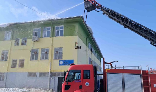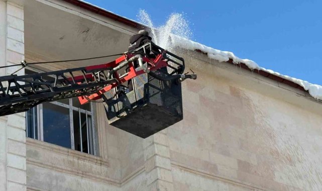 Siirt Belediyesi İtfaiye Müdürlüğü ekipleri, yaya ve araç trafiğinin yoğun olduğu cadde ve sokakların yanı sıra okul binaları başta olmak üzere kamu kurumlarında da önlem aldı. Çatılarda ve saçaklarda biriken kar kütleleri, merdivenli itfaiye araçları kullanılarak kontrollü şekilde temizleniyor.