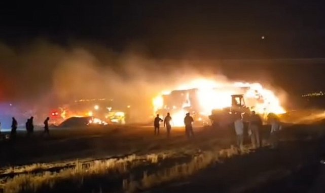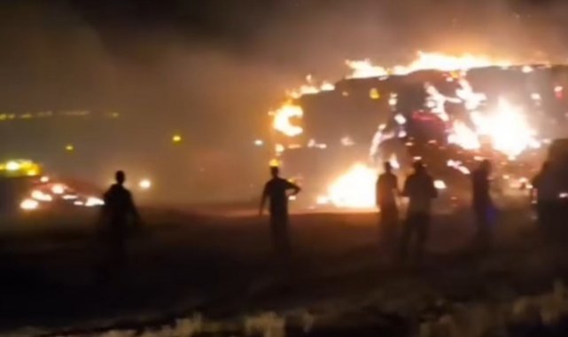 Siirt'in Kurtalan ilçesinde boş arazide çıkan yangında yüzlerce ton saman balyası kül oldu. Alevlerin çevredeki mercimek samanlarına da sıçradığı öğrenildi