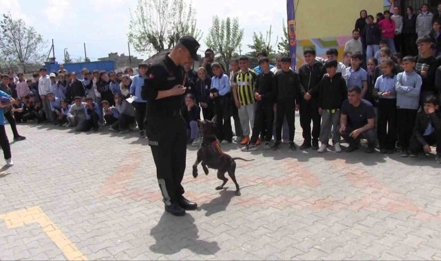 Programın sonunda İl Jandarma Komutanlığı bünyesinde görev yapan "Sınav", "Yapı" ve "Mantık" isimli köpeklerin gerçekleştirdiği akrobasi gösterisi, öğrenciler tarafından ilgiyle izlendi.