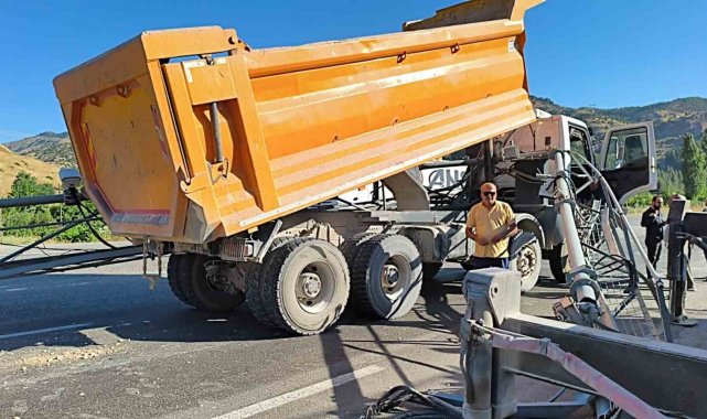Siirt'te damperi açık kalan kamyon EDS direğine çarptı