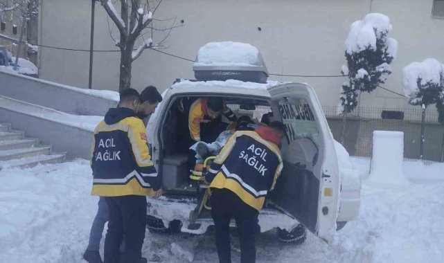 Siirt'in Pervari ilçesinde doğum sancısı tutan hasta, karlı yollarda ekiplerin 5 saatlik zorlu çalışmasının ardından hastaneye ulaştırıldı.
