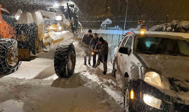 Siirt İl Özel İdaresi ve karayolları ekipleri kar ve tipi nedeniyle yolda kalan cenaze taşıyan otobüs ve hastaları bir bir kurtardı.
