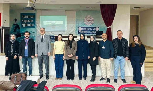 Siirt Eğitim ve Araştırma Hastanesinde, sağlık çalışanlarının kuduz riskli temaslara yönelik bilgi ve farkındalık düzeyini artırmak amacıyla "Kuduz Riskli Temas Bildirimi ve Profilaksi Uygulamaları" konulu eğitim programı düzenlendi.