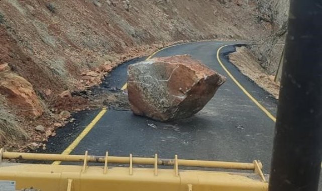 Siirt'te sağanak yağış kayaları yola devirdi, ekipler yolu ulaşıma açtı