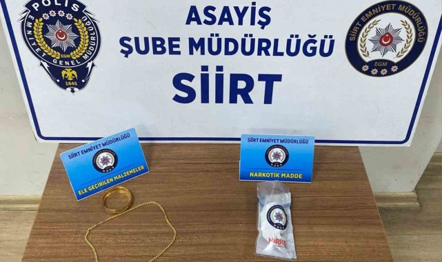 Olay, Yeni Mahalle Güres Caddesi'nde meydana geldi. Bir kuyumcuya müşteri gibi giren bir şahıs, 27,45 gram ağırlığındaki kolyeyi 129 bin 500 liraya sattı. Kuyumcunun yaptığı kontrolde kolyenin sahte olduğunun anlaşılması üzerine durum polis ekiplerine bildirildi. Siirt İl Emniyet Müdürlüğü ekiplerince şüphelilerin S.İ., B.S. ve H.A. olduğu belirlendi. Şüphelilerin kullandığı araç, Bitlis'ten Baykan'a seyir halindeyken durduruldu. Araçta yapılan aramada sahte kolye, sahte bilezikler ve bir miktar uyuşturucu madde ele geçirildi.