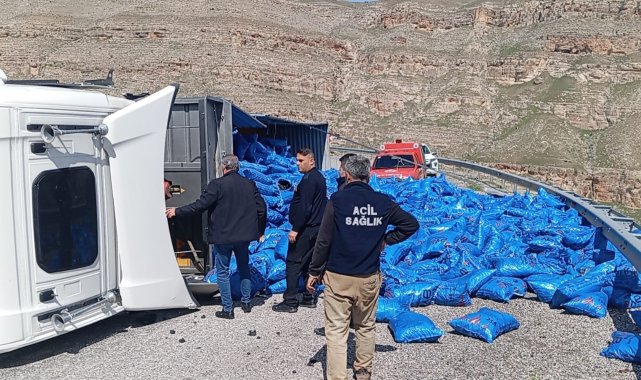 Siirt'te virajı alamayan tır devrildi: 1 yaralı