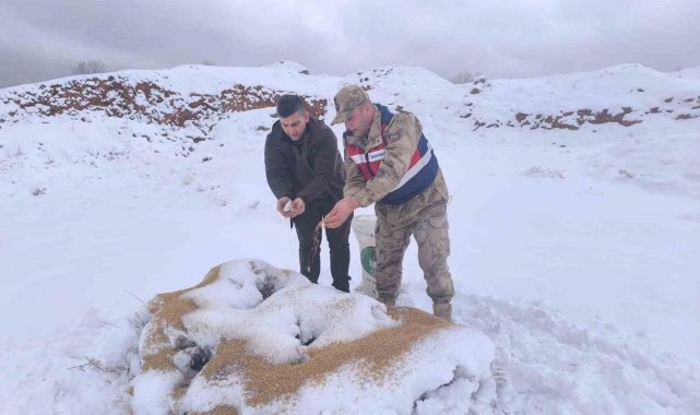 Siirt'te yaban hayvanlarına 750 kilo besi yemi bırakıldı