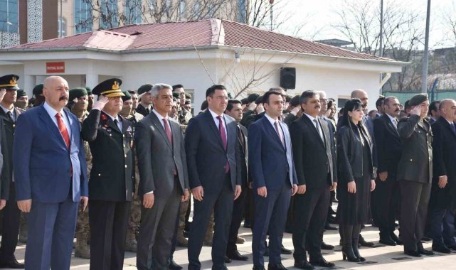 Siirt Garnizon Komutanlığı Şehitliğinde gerçekleştirilen tören, Şehitler anıtına çelenk sunulmasının ardından, saygı duruşu ve İstiklal Marşı'nın okunmasıyla başladı.