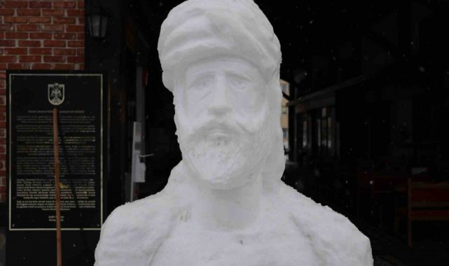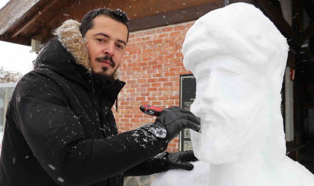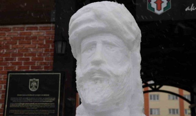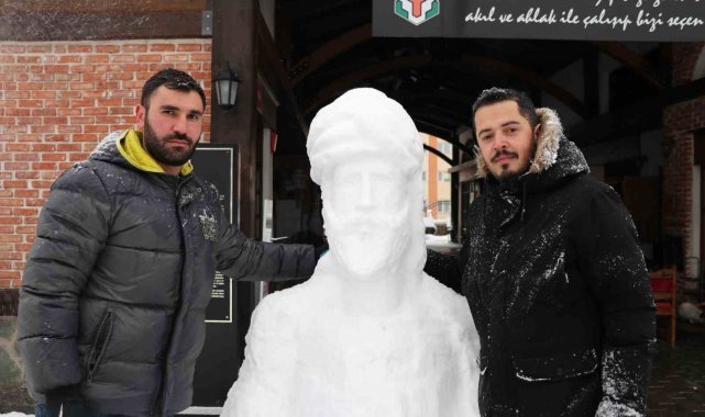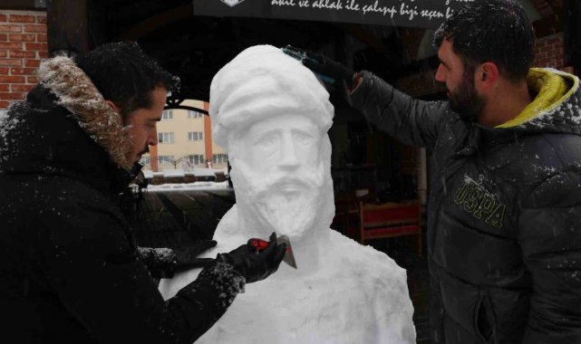 Âşık Ruhsati anısına ölüm yıl dönümünde kardan büstünü yaptılar