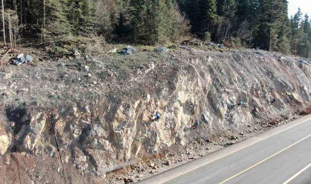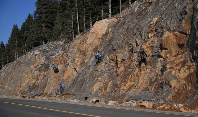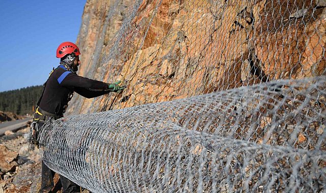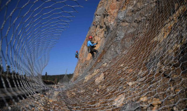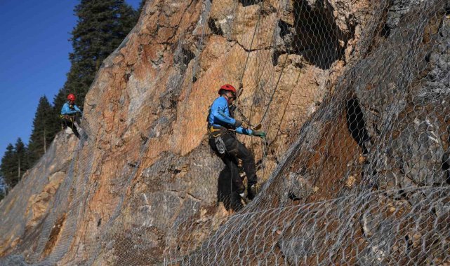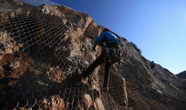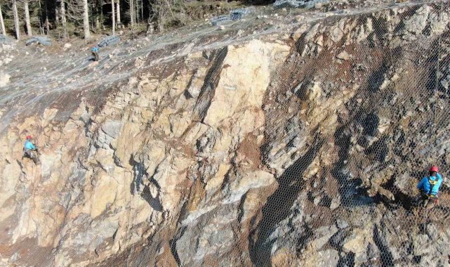 Sık sık heyelanların yaşandığı 2 bin rakımlı dağ çelik ağlarla örülüyor