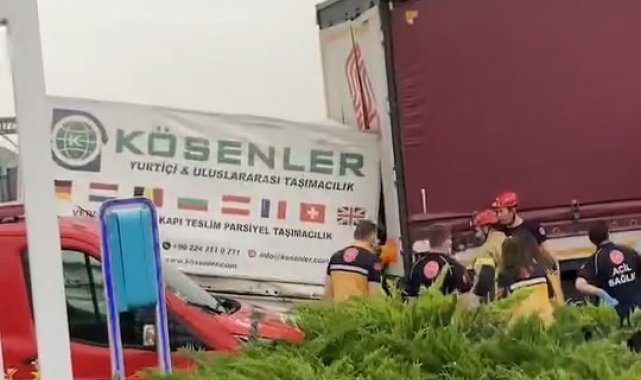 Bursa'da tıra arkadan çarpan kamyonet sürücüsü kabinde sıkıştı. Sürücüyü, itfaiye ekipleri kurtardı.