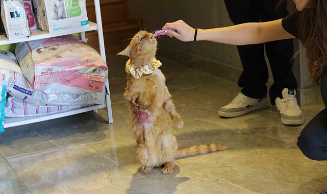 Sıkıştığı motorda bir ayağını kaybeden kediyi üniversite öğrencisi sahiplendi