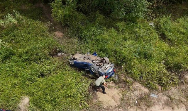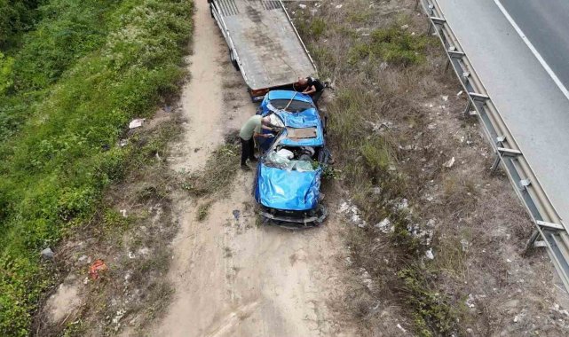 Şile Otoyolu'nda sabah saatlerinde meydana gelen kazada, aşırı hız nedeniyle kontrolden çıkan otomobilin ormanlık alana uçması sonucunda Yelda Karaduman (40) hayatını kaybetmişti. Kaza sonrası jandarma ekiplerinin olay yerindeki incelemeleri tamamlamasının ardından, hurdaya dönen araç, çekiciye yüklenerek otoparka götürüldü. O anlar havadan görüntülendi.