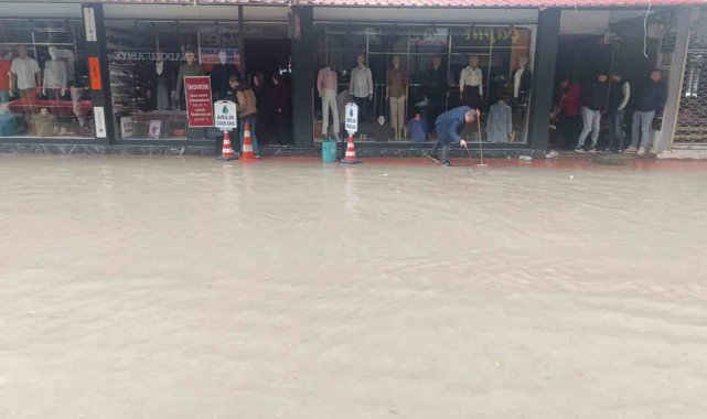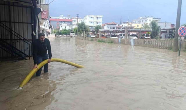 Silifke'de kuvvetli yağış, cadde ve iş yerlerini sular altında bıraktı