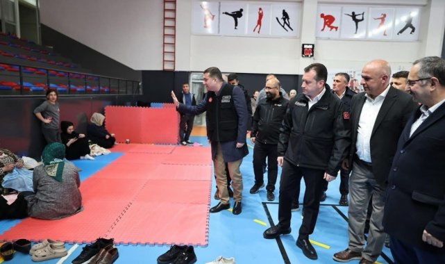 Silivri Belediye Başkanı Balcıoğlu, deprem sonrası Alibey Kapalı Spor Salonu'nu ziyaret etti