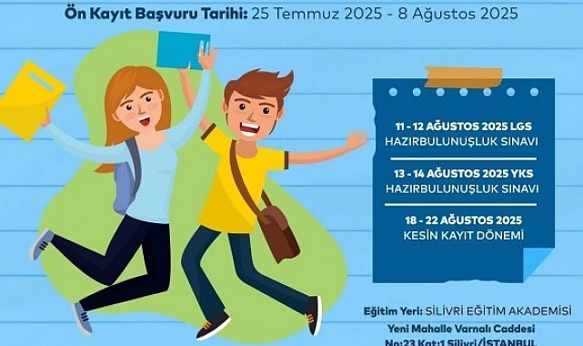 Kurslara başvurmak isteyen öğrenciler, 25 Temmuz - 8 Ağustos 2025 tarihleri arasında ön kayıt işlemlerini gerçekleştirebilecek. Başvurular, Silivri Belediyesi'nin kultursanat.silivri.bel.tr internet adresi üzerinden çevrim içi olarak yapılacak.