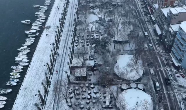 İstanbul'u etkisi altına alan kar yağışı, Silivri'de beyaz örtü oluşturdu. Sahil şeridinde kar yağışı havadan görüntülendi.