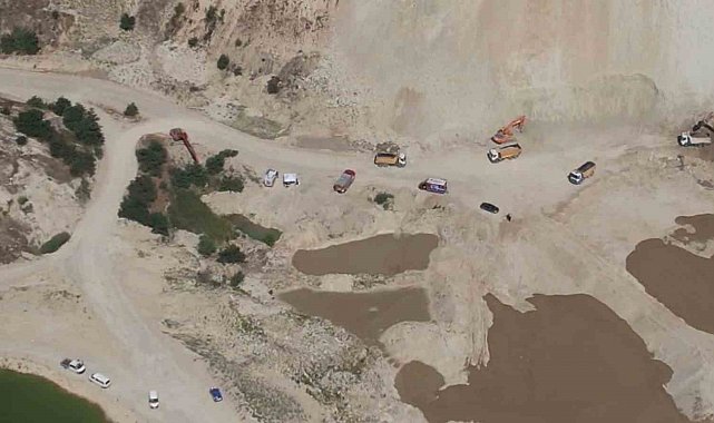 İstanbul Silivri'de bir kum ocağında dün öğle saatlerinde meydana gelen göçük sonrası bir işçi balçık altında kaldı. İşçiyi kurtarma çalışmaları devam ederken, ekiplerin çalışması havadan görüntülendi.