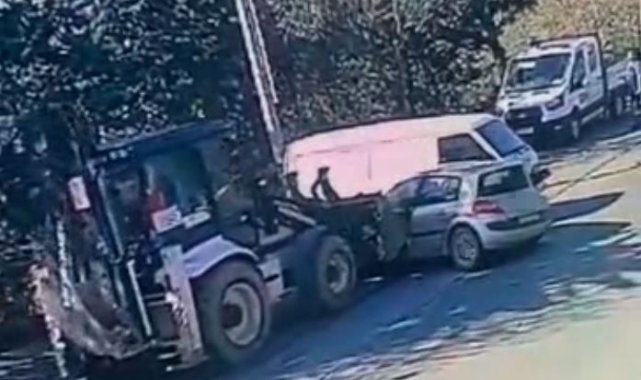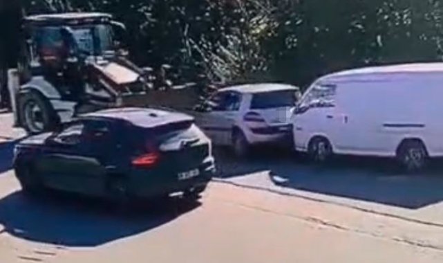 Kontrolden çıkan kepçenin araçlara çarptığı anlar ise güvenlik kamerasına yansıdı. Görüntülerde yoldan geçen kadının kepçenin altında kalmaktan son anda kurtulduğu görüldü.
