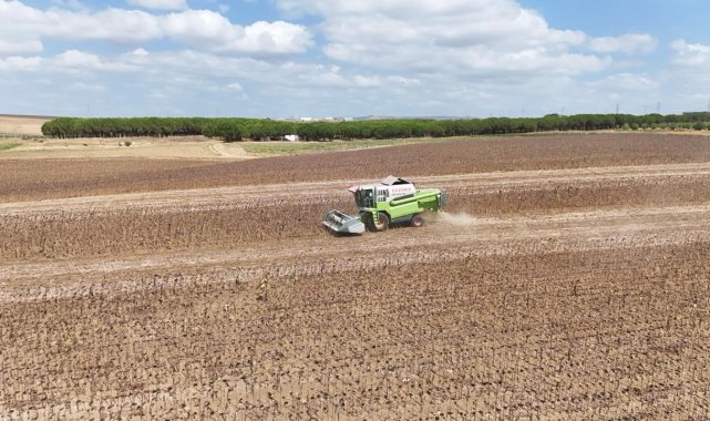 Silivri'de yaklaşık bin 500 dekar alanda ayçiçeği hasadı başladı
