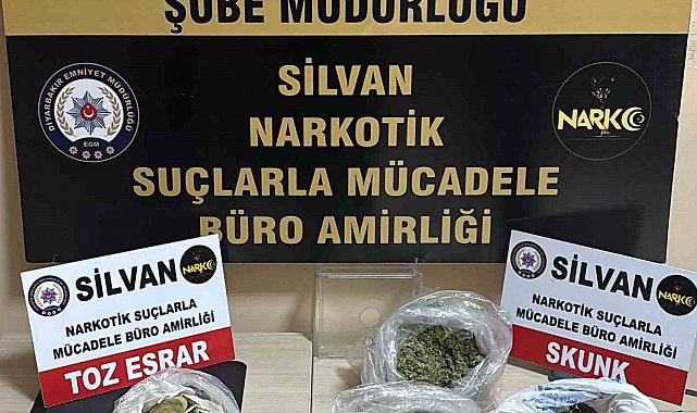 Diyarbakır İl Emniyet Müdürlüğü Narkotik Suçlarla Mücadele Şube Müdürlüğü ekipleri, uyuşturucu madde ticareti yapan şahıslara yönelik Silvan ilçesinde çalışma yürüttü. Silvan İlçe Emniyet Müdürlüğü ile koordineli olarak yürütülen çalışmalar sonucunda belirlenen 5 adrese, şafak vakti eş zamanlı operasyon düzenlendi. Operasyonlarda yapılan aramalarda toplam 450 gram skunk maddesi ile 150 gram toz esrar maddesi ele geçirildi.
