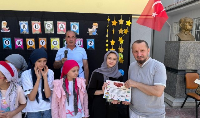 Öğrencileri ve hocaları tebrik eden İlçe Müftüsü Hasan Serçe ise, "Sizlere Kur'an hediye ediyoruz. Ama evde bir köşede unutulmuş bir kitap olarak kalmasın. Ailece bir Kur'an saati belirleyelim, Kur'an-ı Kerim'i ve mealini okuyalım. Böylelikle Kur'an'ın bereketinden istifade etmiş olalım" ifadelerini kullandı.