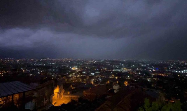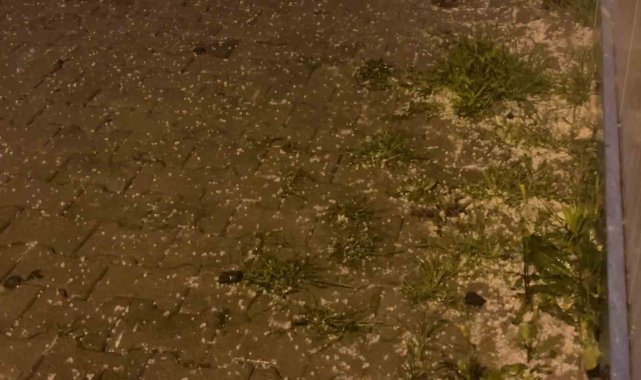 Hatay'da şiddetli yağışla birlikte dolu etkili olurken, havanın kararmasıyla birlikte şimşekler geceyi aydınlattı.