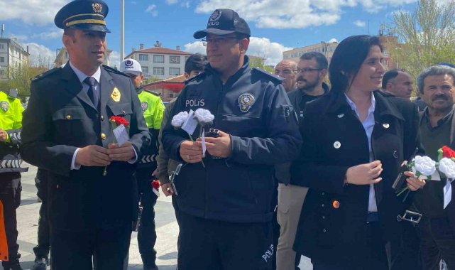 Sincan'da bulunan lise öğrencileri polis memurlarına sürpriz yaparak karanfil dağıttı