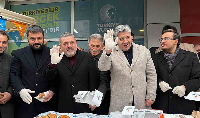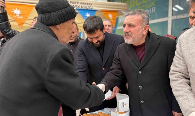 Cami programı öncesi Başkan Ercan, Sincan AK Parti İlçe Başkanlığı'nın önünde Mustafa Özcan ile birlikte vatandaşlara kandil simidi ikramında bulundu.