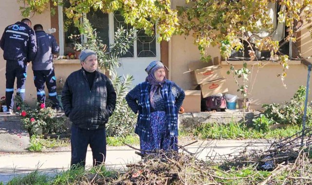 Sındırgı'da 52 yıllık evli çift depremde ağır hasar gören evlerinin yıkılışını gözyaşlarıyla izledi