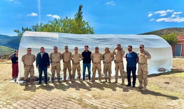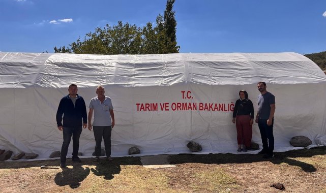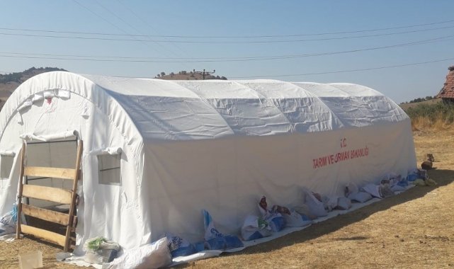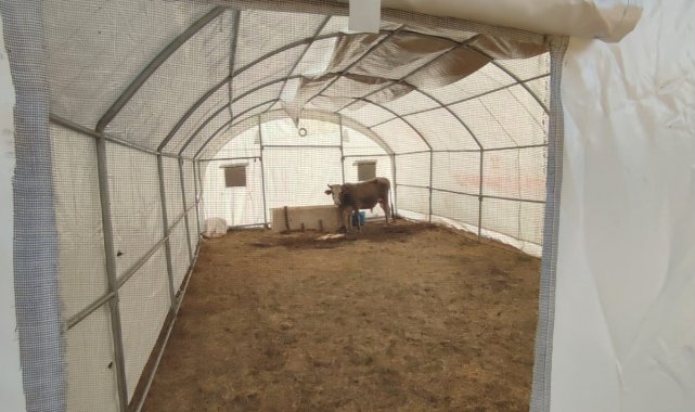 Sındırgı'da depremden etkilenen üreticilere geçici hayvan barınma çadırı desteği