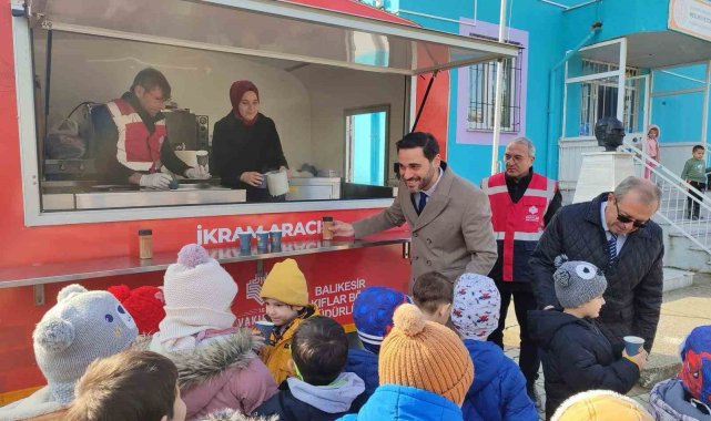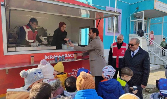 Balıkesir'in Sındırgı ilçesinde öğrencilere Vakıflar Müdürlüğü tarafından salep ikramı yapıldı.