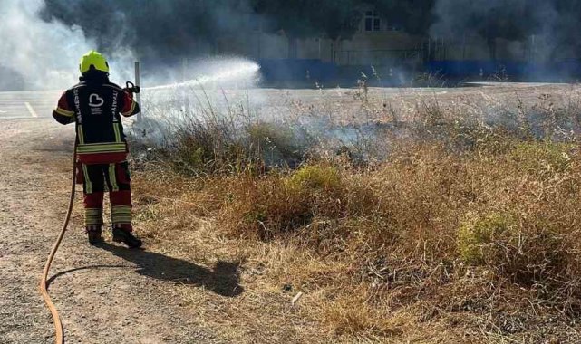 Sındırgı'da okul yanında çıkan ot yangını söndürüldü
