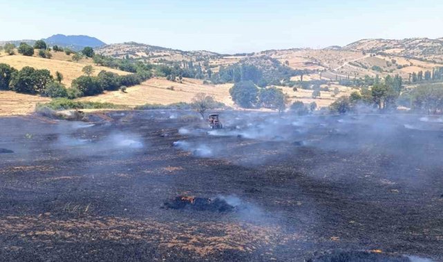 Sındırgı'da samanlar tarlada yandı