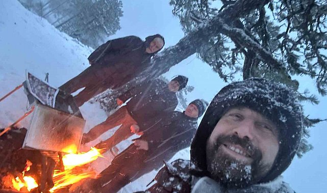 Sındırgı'da zirveye çıkıp kar altında mangal yaktılar