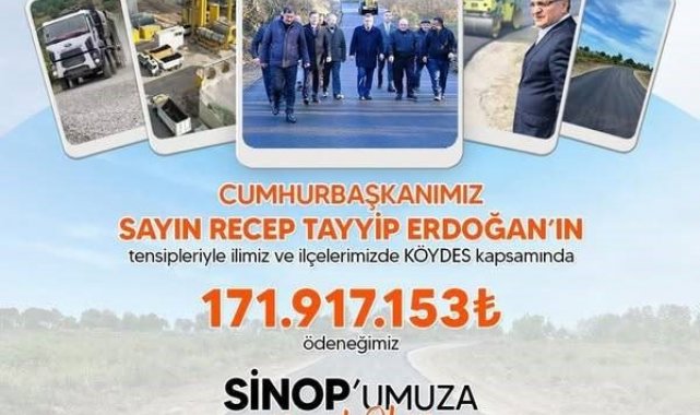 Köylerin Altyapısının Desteklenmesi (KÖYDES) Projesi kapsamında, 2025 yılı için Sinop'a 171 milyon 917 bin TL ödenek tahsis edildi.