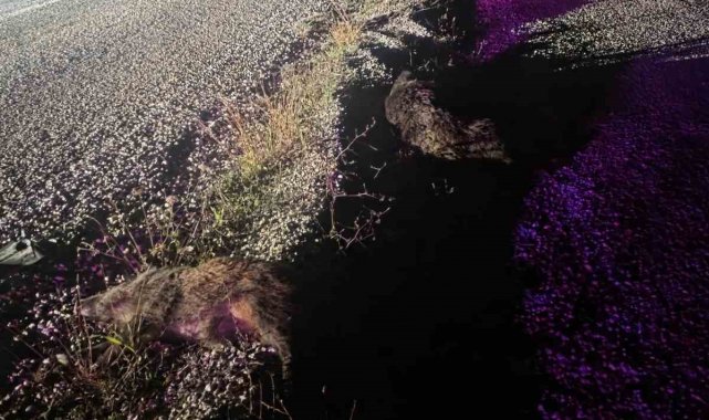 Telef olan domuzların ve aracın kaldırılmasının ardından yol trafiğe açıldı.