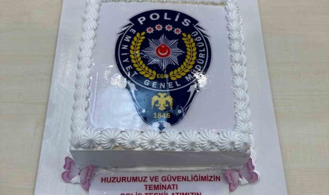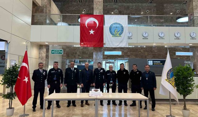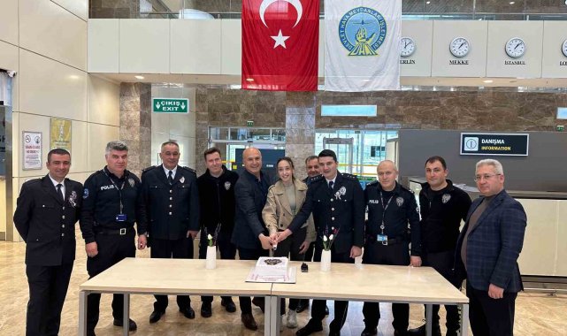 Kutlama programı kapsamında Türk Polis Teşkilatı'nın 180'inci kuruluş yıl dönümüne özel hazırlanan pasta Emniyet mensupları ve havalimanı personelinin katılımıyla kesildi.