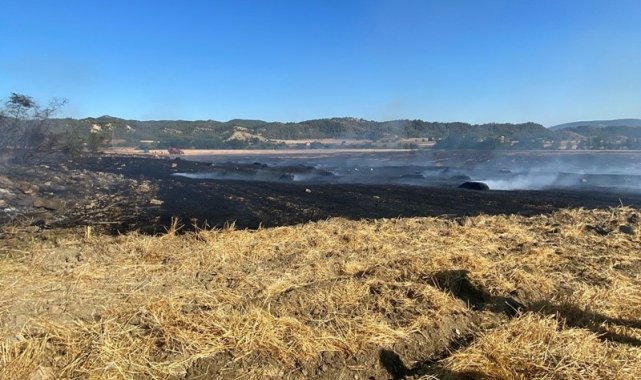 Sinop'un Boyabat ilçesinde meydana gelen anız yangınında 60 balya saman kül oldu.