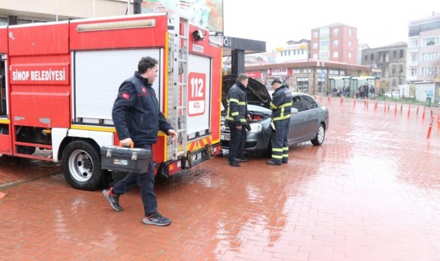 Sinop'ta seyir halindeki bir otomobilde çıkan yangın itfaiye ekiplerince söndürüldü.