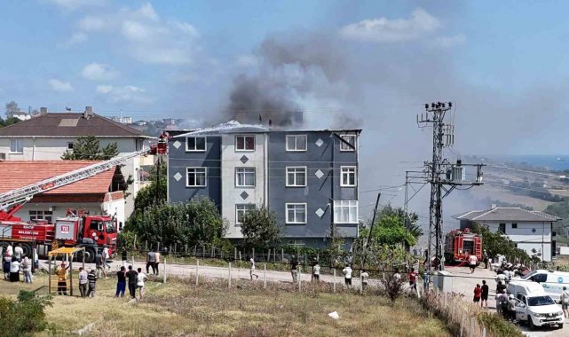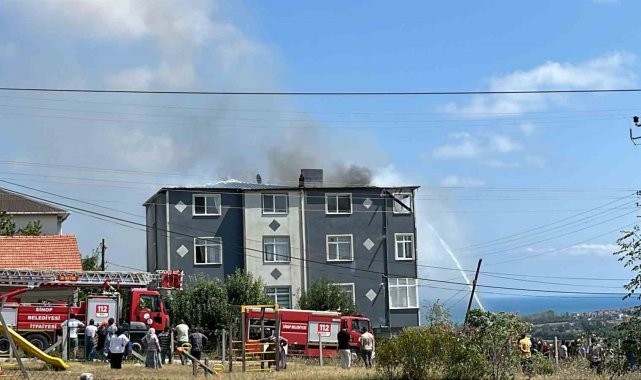 Sinop'ta üç katlı bir binanın çatı katında yangın çıktı.