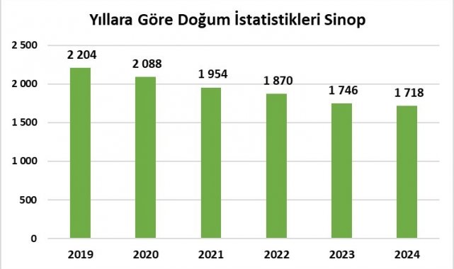 Türkiye İstatistik Kurumu (TÜİK), 2024 yılı Doğum İstatistikleri bültenini yayımladı. Verilere göre Sinop'ta 2024 yılında bin 718 bebek doğdu. Kaba doğum hızı binde 7,5 olarak belirlenirken, Sinop bu oranla Türkiye genelinde en düşük kaba doğum hızına sahip 3. il oldu.