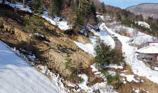 Çakıldak köyü Gedi Mahallesi'nde karların erimesi nedeniyle heyelan meydana geldi. Dağdan kopup gelen toprak yolu kapattı.