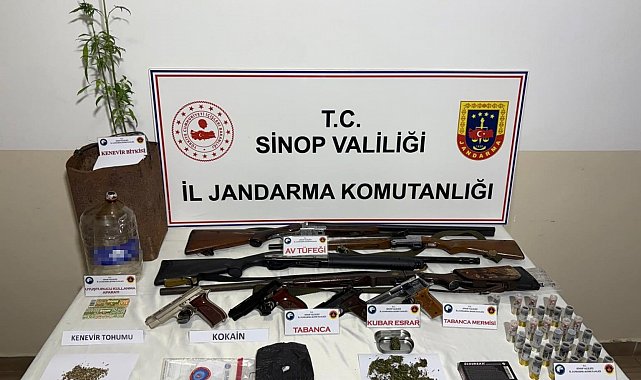 Sinop İl Jandarma Komutanlığı ekiplerince uyuşturucu madde satıcılarına yönelik yürütülen çalışmalar kapsamında Erfelek ilçesinde düzenlenen operasyonda çeşitli miktarlarda uyuşturucu madde, silah ve mühimmat ele geçirildi.