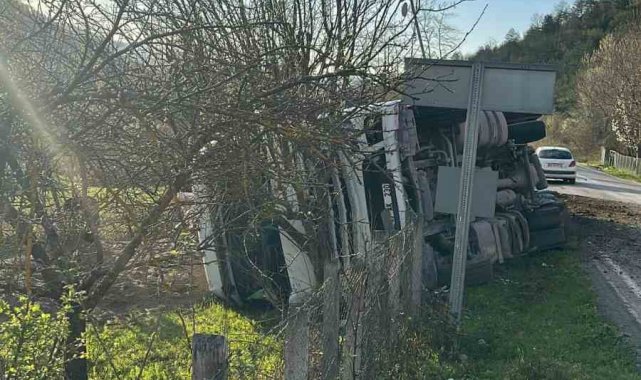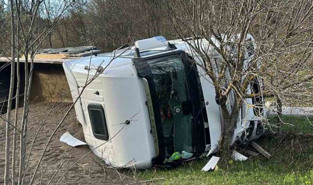 Sinop'ta kamyon devrildi: Sürücü yaralandı