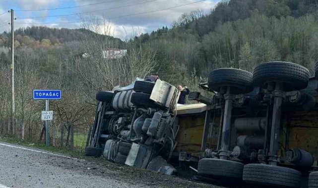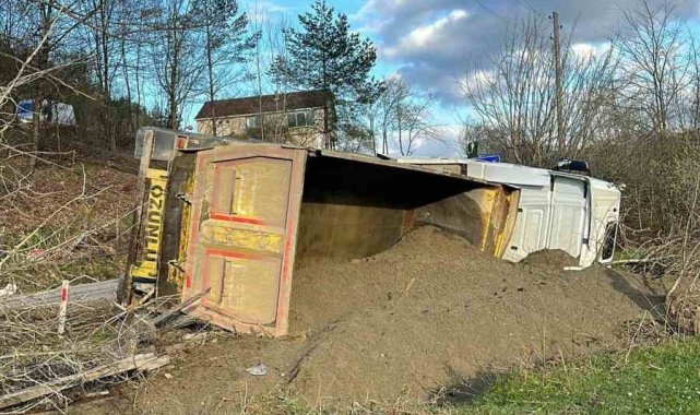 Sinop'un Ayancık ilçesinde kum yüklü kamyonun devrildiği kazada sürücü yaralandı.