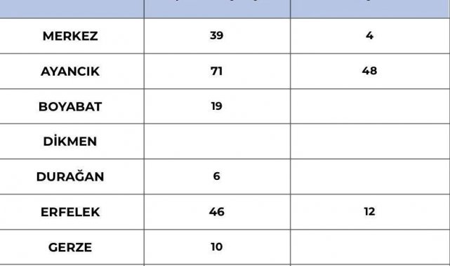 Enerji kesintileri de kar yağışıyla birlikte etkisini gösterdi. İl genelinde 87 köyde elektrik kesintisi yaşanırken, kesintilerin yüzde 55'i Ayancık'ta yoğunlaştı. Ayancık'ta 48 köyde enerji verilemezken, Türkeli'nde 23 köy ile kesintilerin yaklaşık yüzde 26'sı, Erfelek'te 12 köy ile yüzde 14'ü ve Merkez ilçede 4 köy ile yüzde 5'i elektrikten etkilendi.