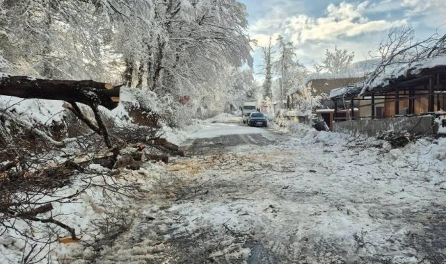 Kara yolunda devrilen ağaç nedeniyle yol ulaşıma kapandı. O esnada otomobili ile yoldan geçen bir sürücü, ağacın devrileceğini anlayıp aracını durdurdu. Olayın ardından bölgede bulunan vatandaşlar, devrilen ağacı yoldan kaldırarak ulaşımın yeniden sağlanması için yoğun çaba gösterdi.