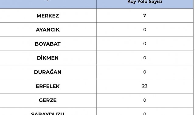 Sinop Valiliği'nden bu sabah yapılan açıklamada ise Merkez ilçede 7, Erfelek ilçesinde 23 olmak üzere toplam 30 köy yolunun ulaşıma kapalı olduğu bildirildi.