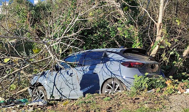 Sinop'ta kontrolden çıkan otomobil ağaçlık alana devrildi